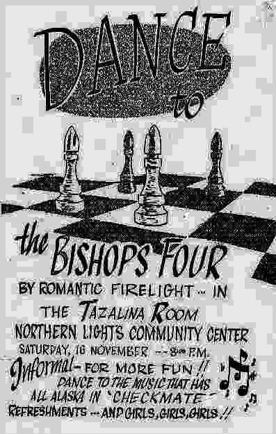 The Bishops Four was the house band for "The Chrysler Showcase", a two hour, sunday evening, talent show on CH.2 TV.