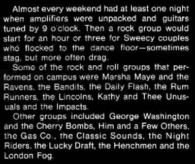 As with many of the colleges and universities in the NW, Central Washington State College (became CWU in 1977) hosted somelively dances for their students during those great days. Some of the bands and acts that performed at this place during those great years of NW music were: