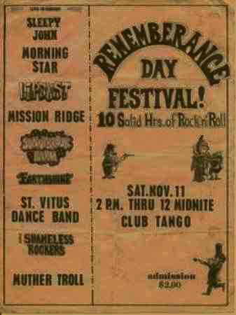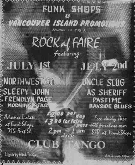 The Motifs Muther Troll The Nocturnals Northwest Company Pacific Scandal Pastime The Pharoahs The Regents (Victoria) Reveen St. Vitus Dance Band Sandoz Shameless Rockers Sleepy John The Sonics Bobby Faulds & The Strangers Stricknine Uncle Slug Victorian Sect The Wailers Wimpenney |