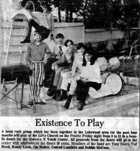 Existence started in the summer of '68 and played school dances, teen clubs, "battle of the bands" and clubs at Fort Lewis and McChord until 1970. Members were me (Debbie McCuen) on keyboards, Conrad Lambkin (lead singer), Randy Litch (lead guitar), Jim Maher (guitar/vocals), Tony Sauro (bass guitar), and Todd Weed (drums). All of us grew up in the South Tacoma area.After Conrad and Tony left, the rest of Existence became Paper Sunn.