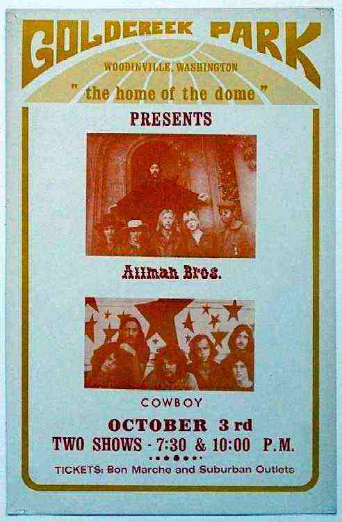 This scan of an original Allman Bros Band poster from the Gold Creek venue sold at auction in late 2013 for around $3,400.00!