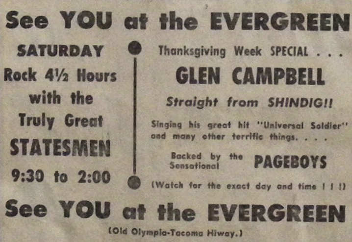 My old drummer, Dan Dazell, checked in a few days ago. Hadn't talked with him in probably 15 years. Said he was following The Sonics and their reunion a couple of months ago. He reminded me about one of the times we (The Pageboys) were playing the Red Carpet. It was a two band show. The other band being The Sonics. As the story goes, we introduced a new original instrumental tune during our set called "Zulu". It was a 1-4-5, heavy drums in G with the guitar player playing a barred G-7 up to a G#-7 and back as the 1. He remembers it as real close to The Witch. I, of course, had way too many Budweisers to remember the gig at all. Although I do remember playing The Red Carpet several times around the time we had our one hit out "Our Love". Next time I see Parypa I'll have to ask him if he remembers.Bob Wikstrom, January 2008.