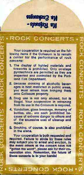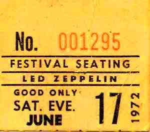 That ticket stub that Ken Simpson posted for Led Zeppelin playing at the Memorial Colesium in Portland on 6-17-72 was also my first concert. Boy was it loud!I was just starting to get a band together as a guitarist and Page was my hero. I had just graduated from high school
