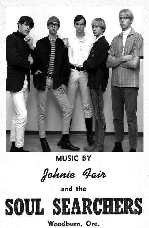 Based in Woodburn, Oregon, Johnie Fair & The Soul Searchers joined the musicians union and began working for EJD Enterprises in a series of shows at the Salem Armory. These shows included opening for both The Shindogs and The Liverpool Five. Additionally, the band worked local sock hops and dances throughout the Willamette Valley. Although short-lived, the band is remembered by many of the kids from Woodburn, North Marion, Salem, Mt. Angel, Gervais and Silverton who attended those shows. Highlights also include dances at Oregon College of Education, The Folksinger Cafe in Portland Oregon, and Gigs at 'Action West' in Salem. The bands final incarnation appeared in August of 1966 at the Payless Drugstore sponsored Battle of The Bands.Neal White left the band early and joined the Civil Air Patrol. Jay Averill's family relocated to Watsonville, California and he was replaced by Jerry Woelke. Bill Coleman left and was replaced by Mac Sessums shortly before the group disbanded at the end of the Summer of 1966. Two members, David Higginbotham and Jerry Woelke soldiered on until the Spring of 1967 with a new band called ' Passion Flower Hotel' that benefited from the connections and equipment produced by Johnie Fair & The Soul Searchers.
