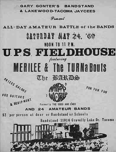 The UPS Field House, a facility of the University of Puget Sound, was popular venue to attract some of the better known groups rocking the Pacific Northwest in the 1960'sSome of the bands that rocked the UPS Field House or fought it out in the battles of the bands in the 1960's were: