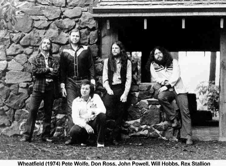 John Powell was the original keyboard player, replaced in 1977 by Kerry Canfield. Rex Stallion, the original drummer, was replaced in about 1978 by Kenny Sawyer.Pete Wolfe, although he plays again in the present incarnation of the band, was originally replaced in about 1980 by Kelly Stites on bass guitar and vocals and Susan Scholz on vocals (i.e., two for one!). Although it was Will, Paul, Pete, Kenny, and Kerry on Wheatfield's LP (from which the photograph shown was taken), it was Will, Paul, Kenny, Kerry, Kelly, and Susan who performed until the band's breakup in 1982 and who reunited every now and then for the odd party gig.