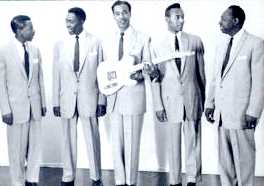 The first man from the left name is Robert Ayers. He passed away but not before passing his musical gifts to his children and grandchildren. He was married and lived in Seattle - he left behind his wife and had 5 children and 5 grandchildren and 4 great grandchildren.