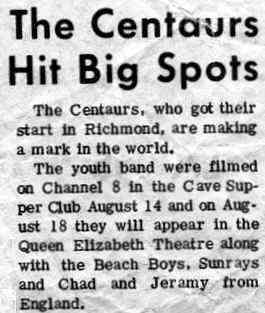 The Centaurs playing at the University of British Columbia War Memorial Stadium before leaving for Europe. The above pictures are from October 1st, 1966.. Standing room only! The second time we played there it was with Jason Hoover and the Epics as well as The Shockers. Again, it was standing room only. The facility was HUGE and was a great place to play with so many fans present .... those were the days!!John Gedak, The Centaurs, January 2009