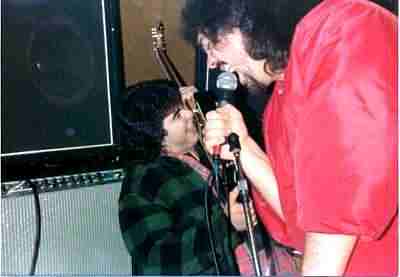 ![]() Here's one of Doug Newby and me out of control at our rehearsal space (10' X 12' mini-storage). Notice the flannel and wool! We weren't necessarily trying to be trendsetters, it was just damned cold out there!!! We ran the entire band out of one light socket. I call this, The ORIGINAL GRUNGE ROCKERS... circa 1982. |