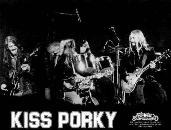 The first Kiss Porky was formed from Fat Jack ashes in 1969. Hal Wright, Rich Condon and myself from Fat Jack with new guy John Shoemaker (lead guitar). That band lasted a very short time. We secured a six-month booking at the Grapevine under the viaduct in Seattle….and immediately broke up!Fast forward to 1971. John Shoemaker, Terry Hughes (bass), and a drummer call me to form new Kiss Porky. We do almost all original material, and are loud and obnoxious. People tell us to turn down, we turn up. Over the next four years, we played at many bars around the Northwest, alienating club owners and irritating patrons wherever we went. We were so loud that Terry went completely deaf in one ear, and John lost all the highs in one ear. The style of music would have to be called a mix of heavy metal, goth and punk, but those terms didn't exist at the time.