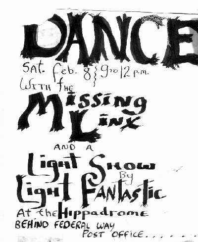 This is a Victoria / Nanaimo group with two names. We called ourselves the Missing Lynx when we played up island or Nanaimo, and we billed ourselves as the Runabouts in Victoria.... or maybe it was the other way around. Check out the crazy P.A horn Bill Routley is packing in the bottom right of the photo. We were a cover-band doing songs made popular by Eric Burton and the Animals, Lovin' Spoonful, Neil Diamond, Question Mark and the Mysterians, The Doors, Rolling Stones, etc. We were heavily influenced by other pnwbands; Don and the Goodtimes, The Sonics, Paul Revere and the Raiders, and Kingsmen. You can see that some of us are just starting to take the plunge into the long hair thang. I'd like to dedicate this site to my musical brother; Gregg ShupeAlan Burns, July 2004