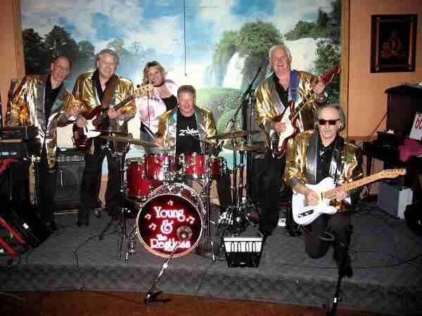 Young with her "Restless" band of Gerry, Gordie, Moe, Roger, &